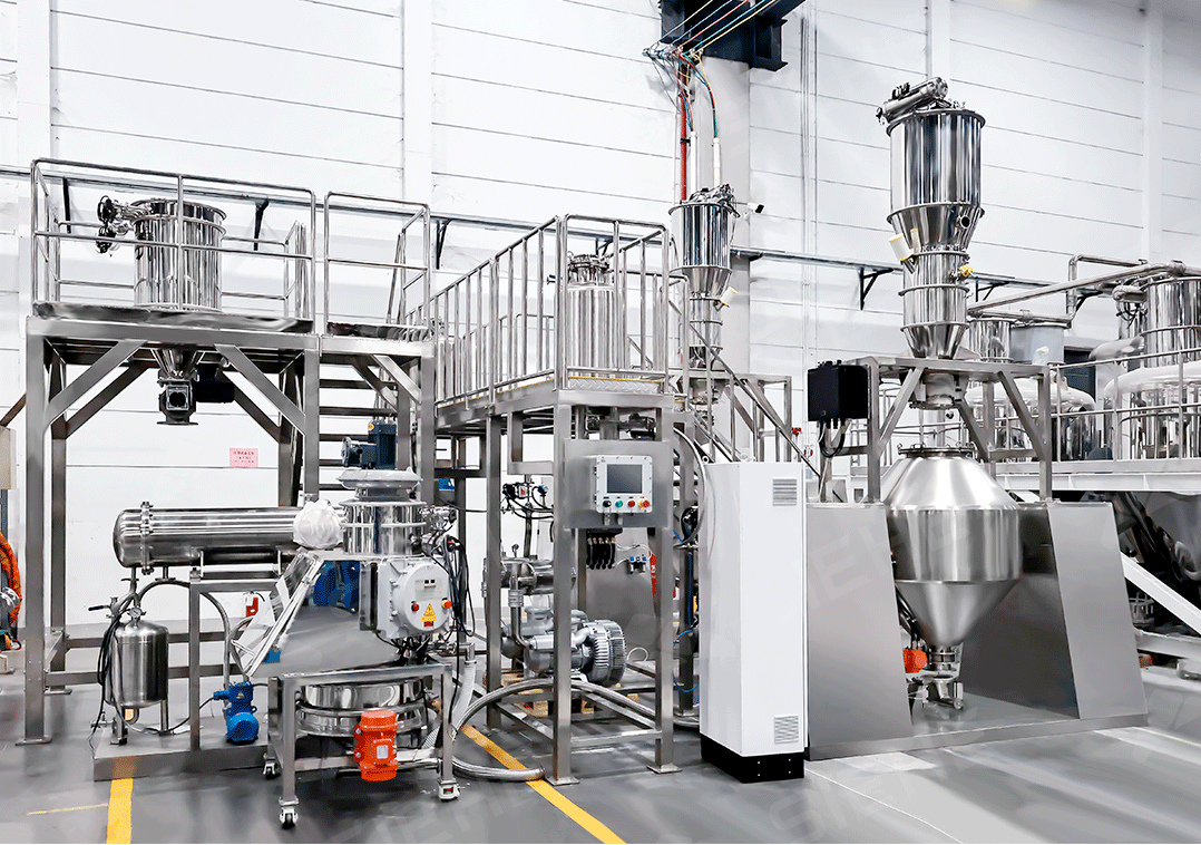此次交付的粉体生产线设备,采用模块化智能控制技术,专为食品粉末的上料、混合干燥、输送等环节研发。结合DryBev物料特性和工艺需求,整线均采用防爆型设计,满足高危环境下安全生产需求。