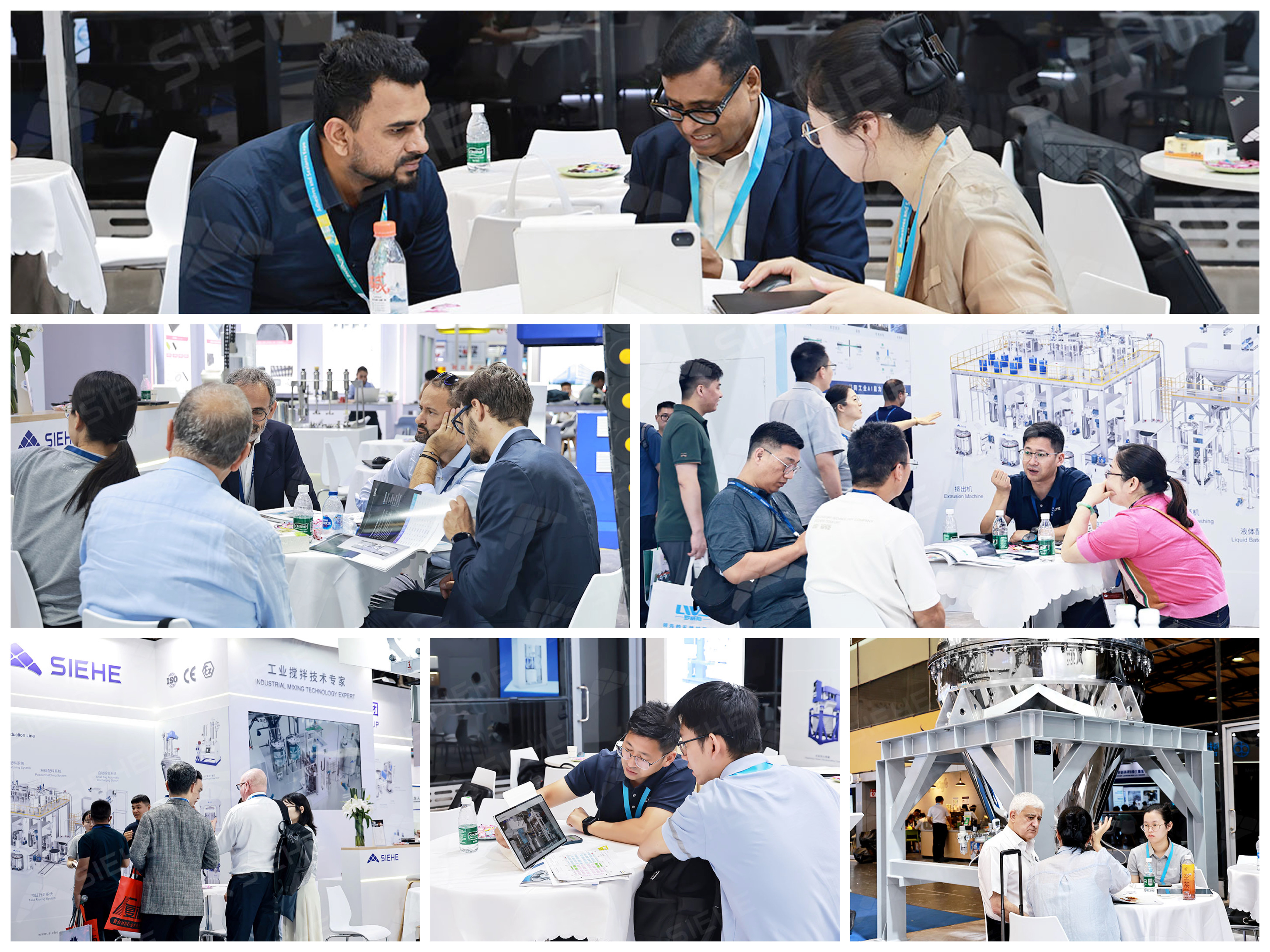 在胶粘剂展上,世赫聚焦胶粘剂生产工艺的智能化与高效化升级,重点推出全自动胶粘剂成套线、胶粘剂/密封胶生产系统等一系列高效智能解决方案,并现场展示500L双行星分散搅拌机、2500L立式螺带真空干燥机及实验室双行星分散搅拌机等多台实机设备。其中,全自动胶粘剂成套线专为高粘度物料设计,实现生产环节全自动化,大幅提升胶粘剂生产自动化水平与效率;立式螺带真空干燥机,集混合、反应、干燥等功能于一体,可连接真空系统实现低温高效干燥,效率较传统设备提升3-5倍。展品覆盖分散、混合、干燥及研发全流程,致力于为客户提供高效、稳定、优质的整体解决方案,助力胶粘剂产业迈向智能制造新阶段。